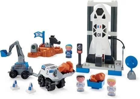 Baza kosmiczna z promem kosmicznym i platformą startową oraz łazikiem z naczepa do badania znalezisk kosmicznych. W zestawie dodatkowo 3 figurki astronautów.