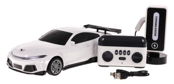 - auto elektryczne białe, - stacja ładowania, - pilot, - kabel ładowania stacji. |