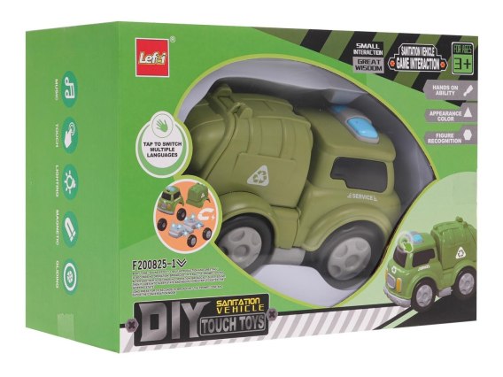 Interaktywne autko śmieciarka na magnesy dla dzieci powyżej 3-go roku życia. Autko wykonane zostało z najlepszej jakości plastiku i posiada efekty dźwiękowe i świetlne. Po naciśnięciu maski pojazdu usłyszymy odgłosy jazdy pojazdu, wesołe melodie czy też śmiech dziecka. Efektom dźwiękowym towarzyszą mrugające kolorowe światełka. Pojazd rozłożyć możemy na czynniki pierwsze, bez pomocy żadnego narzędzia. Poszczególne elementy posiadają magnesy, dzięki czemu łatwo i trwale łączą się ze sobą. Zabawka zasilana jest bateriami typu 3 x AG13 (w zestawie). Funkcje autka: - odpowiednie dla dzieci powyżej 3-go roku życia, - wykonane z najlepszej jakości plastiku, - efekty dźwiękowe: odgłosy jazdy pojazdu, wesołe melodie, śmiech dziecka, - efekty świetlne: mrugające światełka na dachu pojazdu, - możliwość rozłożenia pojazdu na czynniki pierwsze bez użycia narzędzi, - wbudowane magnesy w poszczególne elementy pojazdu, - otwierana klapa tylna śmieciarki. |