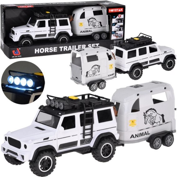 Auto terenowe z otwieraną przyczepą bukmanką + KOŃ Światło i dźwięk ZA5912