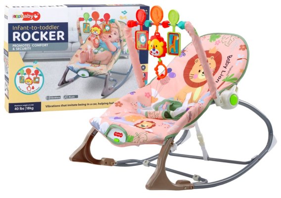 Bujaczek Krzesełko Leżaczek Dla Niemowlaka Wibracja Dźwięk Bujak Różowy Lew