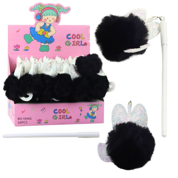 Długopis żelowy z czarnym pomponem to połączenie stylu i funkcjonalności, które sprawi radość każdej miłośniczce oryginalnych dodatków. Ozdobiony dużym czarnym pomponem z błyszczącymi uszkami i ogonkiem, prezentuje się niezwykle efektownie.