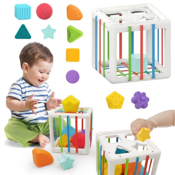 ✅ Wielofunkcyjność: Kostka pełni funkcję sortera oraz grzechotki. Dzieci mogą bawić się, potrząsając kostką, która wydaje przyjemne dźwięki, co dodatkowo stymuluje ich zmysły.