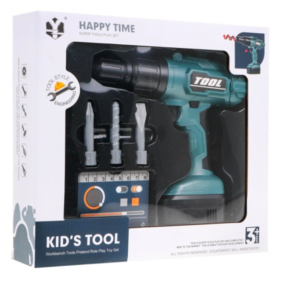 | Zabawkowa, interaktywna wkrętarka dla dzieci od 3-go roku życia, działa jak prawdziwa. Posiada wymienne końcówki, które można dowolnie zmieniać, a dzięki dwóm kierunkom obrotu , można nią wkręcać i wykręcać. Wkrętarka posiada funkcje dźwiękowe i świetlne. Dodatkowo w wkrętarce można wyjmować akumulator jak w narzędziach dla dorosłych. Zasilana jest bateriami typu 2 x AA 1,5V, brak w zestawie. |