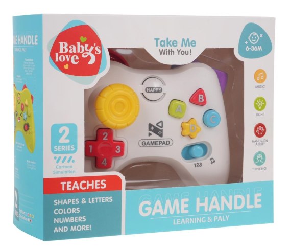 Interaktywny pad z efektami dźwięku i światła dla najmłodszych od 6-go miesiąca życia. Pad wykonany został z najlepszej jakości plastiku i jest w pełni bezpieczny dla maluszka. Pod każdym przyciskiem, kryją się migoczące światełka i dźwięki. Pad może działać w dwóch trybach: muzyczno-dźwiękowym lub edukacyjnym. W trybie edukacyjnym dziecko poznaje literki, cyferki, kształty i kolory. Na górze pada, znajdują się dwa elementy do kręcenia, które przesuwając się, wydają dźwięki terkotania. Zabawka zasilana jest bateriami typu 3 x 1,5 V AAA, których brak w zestawie. Funkcje zabawki: - odpowiednia dla dzieci od 6-go miesiąca życia, - wykonana z najlepszej jakości plastiku w żywych kolorach, - posiada dwa tryby: edukacyjny i muzyczny, - funkcje muzyczne: odgłosy po naciśnięciu każdego przycisku, melodie, odgłosy z gier, nazwy literek, cyferek, - funkcje świetlne: migoczące światełka po naciśnięciu każdego przycisku, - elementy do przesuwania z odgłosami terkotania, - zabawka w języku angielskim. |