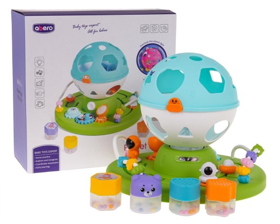 Interaktywny, edukacyjny, sorter o tematyce kosmosu dla maluszków od 18-go miesiąca życia. Sorter wykonany został z najlepszej jakości plastiku w żywych kolorach, przyciągających wzrok maluszka. Zabawka składa się z podstawki, na której znajdują się kółeczka zębate do kręcenia, labirynty do pokonania i przekładanki. Na podstawce jest również okrągły sorter z otworami w kształcie figur geometrycznych. Maluszek musi przypasować klocuszki znajdujące się w zestawie do odpowiednich kształtów na sorterze. Po dopasowaniu wszystkich klocków sorter można otworzyć i zabawę rozpocząć na nowo. W zestawie znajdują się 4 klocuszki. Dodatkowo każdy z nich w środku posiada małe kuleczki, które sprawiają, że klocuszek grzechocze. Sorter posiada również funkcję światła i dźwięku, z wnętrza kuli wydobywa się gwiezdny blask i słychać melodie. Zabawa tym sorterem uczy maluszka dopasowywać i kategoryzować według kształtu i koloru. Poprawia zdolności poznawcze i motoryczne. Dziecko poznaje przyczynę i skutek oraz doskonali umiejętności rozwiązywania problemu. Zabawka zasilana jest bateriami typu 3 x AA 1,5 V (brak w zestawie). Funkcje zestawu: - odpowiedni dla maluszka od 18-go miesiąca życia, - wykonany z najlepszej jakości plastiku w żywych kolorach, - daje mnóstwo możliwości zabawy: sorter kształtów i kolorów, koła zębate do kręcenia, labirynty, przekładanki, - funkcje dźwiękowe: melodie, grzechoczące klocki, - funkcje świetlne: projektor, - klocuszki z kuleczkami w środku, |