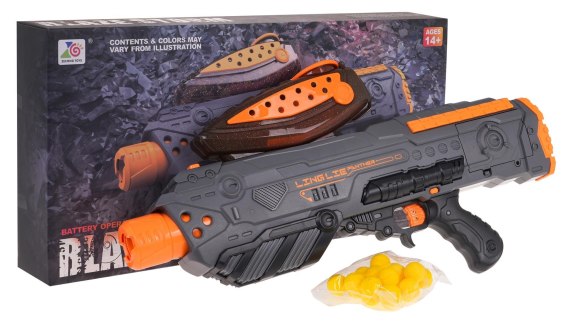 - karabin ok. 54 cm x 20 cm x 7,5 cm, - magazynek ok. 22,5 cm x 9 cm x 7 cm, - kulki ok. 2,5 cm średnicy, - opakowanie ok. 55,5 cm x 28 cm x 8,5 cm. |