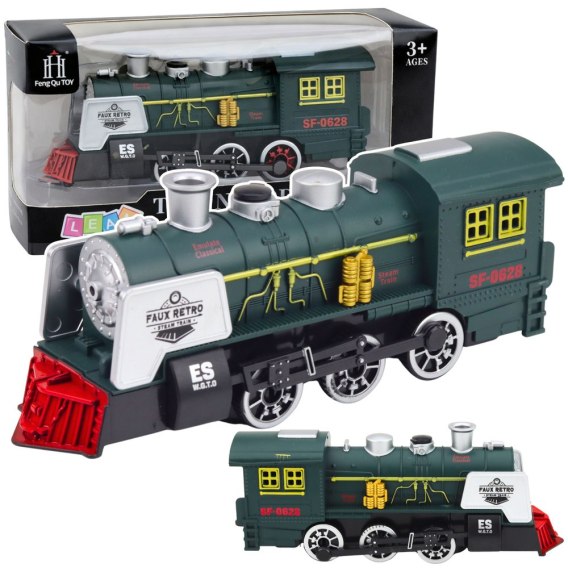 KLASYCZNA LOKOMOTYWA ZIELONA EFEKTY DŹWIĘKOWE DYM CZUJNIK