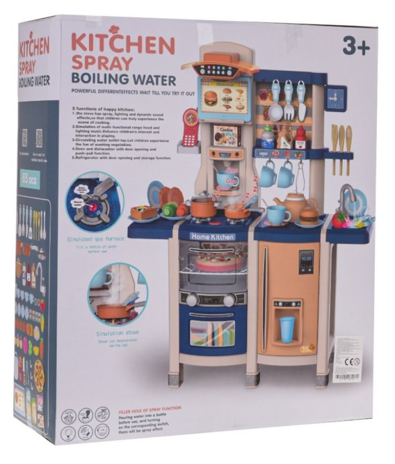 Interaktywna kuchnia z funkcją światła, dźwięku i kranikiem, z którego wydobywa się woda, a także mnóstwem akcesoriów, dla dzieci od 3-go roku życia. Kuchnia została znakomicie wykonana, z najlepszej jakości plastiku i jest w żywych kolorach zachęcających dziecko do zabawy. Na blacie kuchni znajduje się interaktywna płyta z palnikami. Po przekręceniu jednego z pokręteł słychać odgłosy gotowania, a drugiego, odgłosy smażenia. Odgłosom gotowania i smażenia towarzyszy podświetlenie palników. Z kranu faktycznie wypływa woda, jak w prawdziwym zlewie, dziecko będzie mogło umyć zabawkowe naczynia. W zestawie mamy też atrapę lodówki z otwieranymi drzwiczkami i dystrybutorem wody, otwierany piekarnik z efektami dźwiękowymi i świetlnymi, zmywarkę, ekspres do kawy, panel z wentylatorem oraz efektami dźwiękowymi i świetlnymi, telefonik z dźwiękiem i światłem oraz mnóstwo półeczek, na których ułożyć możemy atrapy produktów. Cały zestaw prezentuje się znakomicie. Zabawka zasilana jest bateriami typu 6 x AA 1,5 V (brak w zestawie) oraz 3 x AAA 1,5 V (brak w zestawie). Funkcje zestawu: - odpowiednia dla dzieci od 3-go roku życia, - wykonana z najlepszej jakości plastiku w żywych kolorach, - bogato wyposażona, zestaw składa się aż z 65 elementów, - ruchome pokrętła, - palniki z podświetleniem, - odgłosy smażenia i gotowania, - kran z lecącą wodą, - otwierana lodówka z atrapą dystrybutora wody, - otwierany piekarnik z dźwiękami i światłem, - otwierana zmywarka, - wbudowany ekspres do kawy, - panel z wentylatorem oraz światełkami i dźwiękami - telefonik z odgłosami (dzwonki, odgłosy zwierząt, piosenka) i podświetlaną anteną, - ramka na karty z przepisami, - zegar z ruchomymi wskazówkami, -szybkowar zasilany bateriami, wytwarzający bąbelki w wodzie i odgłosami gotowania, - 3 produkty (ryba, rak, kawałek mięsa) zmieniają kolor po włożeniu do szybkowaru. |
