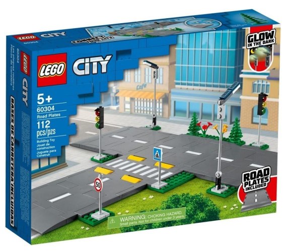 O Płyty drogowe z zestawu LEGO City 60304 pozwalają dzieciom uzupełnić modele o realistyczne tło i są doskonałym punktem wyjścia do wymyślania emocjonujących zabaw.o Co jest w pudełku? Pięć płyt drogowych LEGO(R) z oznaczeniami pasów, progami zwalniającymi i przejściem dla pieszych, a do tego świecące w ciemności latarnie, zabawkowa sygnalizacja świetlna, znaki drogowe, drzewa i elementy zieleni.o Dzieci mogą zbudować realistyczną ulicę LEGO(R) z wieloma wyglądającymi jak prawdziwe detalami, a potem rozbudować miasto, łącząc swoją konstrukcję z innymi zestawami LEGO City, które zawierają płyty drogowe.o Zestaw LEGO(R) City Płyty drogowe doskonale sprawdzi się jako prezent na Boże Narodzenie, urodziny lub z innej okazji dla pięciolatków i starszych dzieci.o Po zbudowaniu główny układ płyt drogowych ma ok. 13 cm wysokości, 44 cm szerokości i 38 cm głębokości.o Płyty drogowe LEGO(R) City są świetnym tłem dla budowanych modeli LEGO i zabaw.o Zestaw zawiera broszurę z instrukcjami oraz cyfrowy poradnik Instructions PLUS. Jest on dostępny w bezpłatnej aplikacji LEGO(R) Building Instructions na smartfony i tablety i pomaga początkującym konstruktorom zostać mistrzami konstrukcji.