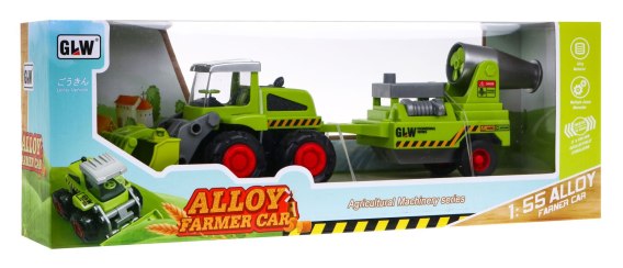 Ładowarka rolnicza dla dzieci 1:55 Ciągnik z turem + Naczepa z opryskiwaczem sadowniczym