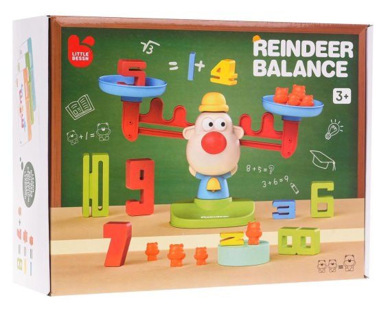 - klaun z wagą ok. 33 cm x 19 cm x 10,5 cm, - małe misie ok. 2,5 cm x 2,5 cm, - misie duże ok. 3 cm x 3 cm, - cyferki od 3,5 cm do 8 cm, - karty z zadaniami ok. 13 cm x 8 cm, - opakowanie ok. 28,5 cm x 8,5 cm x 21 cm. |