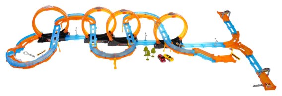 Mega tor wyścigowy z pętlami 360 stopni, ostrymi zakrętami, dla dzieci od 3-go roku życia. Tor wykonano z najlepszej jakości plastiku w żywych kolorach. Na zestaw składa się 74 elementy do samodzielnego montażu. Tor posiada odcinki proste do rozpędzenia pojazdu, 4 pętlę 360 stopni, ostre zakręty i dwa pojazdy. Pojazdy napędzane są napędem pull back. Wystarczy delikatnie nacisnąć pojazd do tyłu, by przejechał tor z pełną mocą. Funkcje toru: - odpowiedni dla dzieci od 3-go roku życia, - wykonany z najlepszej jakości plastiku w żywych kolorach, - cztery pętle 360 stopni, - pojazdy z napędem pull back. |