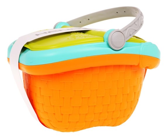 Koszyk piknikowy z akcesoriami dla dzieci od 3 - go roku życia. Idealny sposób na zabawę na świeżym powietrzu. Ten bogato wyposażony zestaw składa się z 32 elementów: pojemnego koszyka, małego koszyczka, plastikowych owoców i warzyw, mięsa, burgerów, tortilli, ciasta, sera itp.