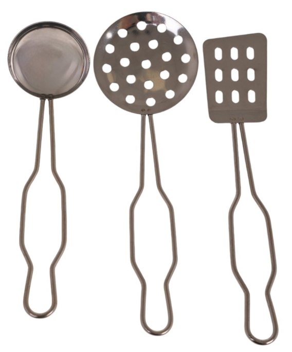 Metalowy zestaw, kolorowych garnków dla dziecka od 3-go roku życia. W skład zestawu wchodzi śliczny niebieski garnek z rączkami i pokrywką, różowy garnek z rączkami i pokrywką, zielona patelnia, łopatka, łyżka cedzakowa, chochelka i podkładka kuchenna. Wszystko prezentuje się znakomicie. Wykonanie z metalu sprawia, że zestaw będzie niezawodny i wytrzymały.