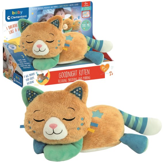 ✔ Uspokajające wibracje - zmienne natężenie i częstotliwość zsynchronizowane z „oddechem" kotka, który delikatnie porusza brzuszkiem i wprowadza dziecko w stan spokoju i odprężenia