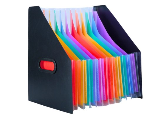 • Pionowa Teczka Organizer Na Dokumenty Kolorowe Zakładki Kieszenie Czarna A4