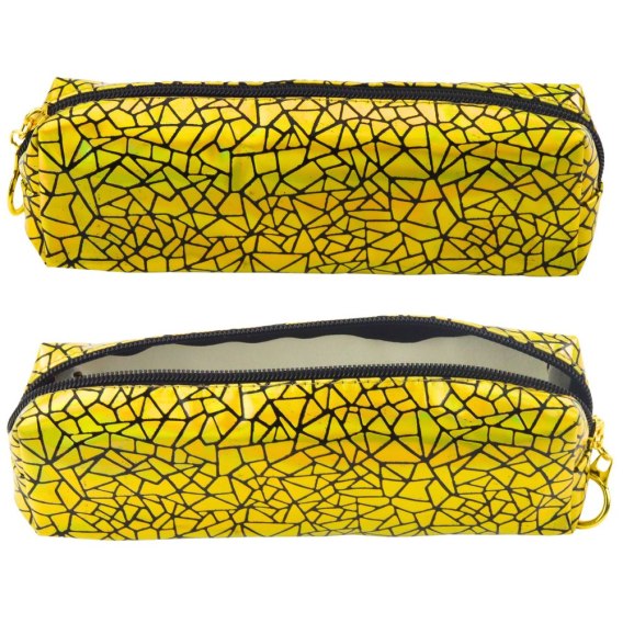 Unikalny efekt holograficzny w połączeniu ze złotym kolorem sprawia, że piórnik wyróżnia się na tle klasycznych modeli. Błyszcząca powierzchnia z geometrycznym wzorem zmienia odcień w zależności od kąta padania światła. To doskonały wybór dla osób, które chcą połączyć funkcjonalność z modnym wyglądem.