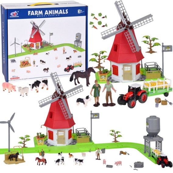 SERIA ZWIERZĘTA FARMA Zestaw WIATRAK młyn 101ele figurki ZA5688