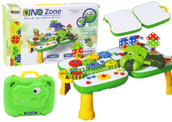 Stolik Walizka Zestaw DIY Układanka Klocki Dinozaur Wkrętarka 249 ele.