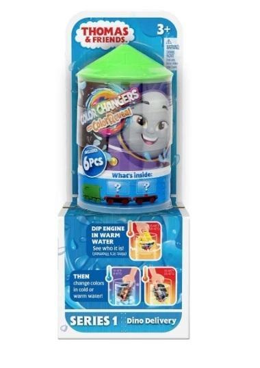 W zestawie są 1 lokomotywa-niespodzianka, 2 wagony i 2 ładunki-niespodzianki. Zbierz je wszystkie! (Każdy zestaw sprzedawany oddzielnie, zależnie od dostępności).