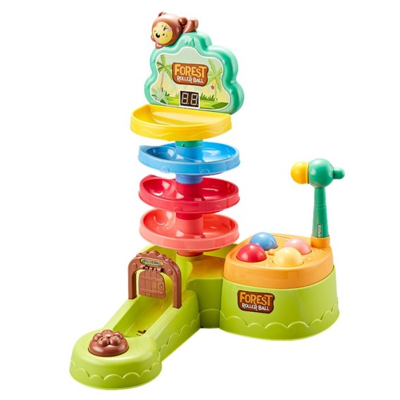 Tor dla kulek to wielofunkcyjna zabawka interaktywna, która została zaprojektowana z myślą o wszechstronnym rozwoju dziecka już od najmłodszych lat. Zestaw łączy w sobie kilka aktywności - zbijanie piłek młotkiem, celowanie do obręczy oraz śledzenie toru spadających kulek, co angażuje dziecko zarówno ruchowo, jak i umysłowo.