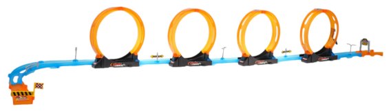 Tor wyścigowy z czterema pętlami 360 stopni, dla dzieci od 3-go roku życia. Tor wykonano z najlepszej jakości plastiku w żywych kolorach. Na zestaw składa się 31 elementów do samodzielnego montażu. Tor posiada odcinki proste do rozpędzenia pojazdu, 4 pętlę 360 stopni i dwa pojazdy. Pojazdy napędzane są napędem pull back. Wystarczy delikatnie nacisnąć pojazd do tyłu, by przejechał tor z pełną mocą. Funkcje toru: - odpowiedni dla dzieci od 3-go roku życia, - wykonany z najlepszej jakości plastiku w żywych kolorach, - 4 pętle 360 stopni, - pojazdy z napędem pull back, |