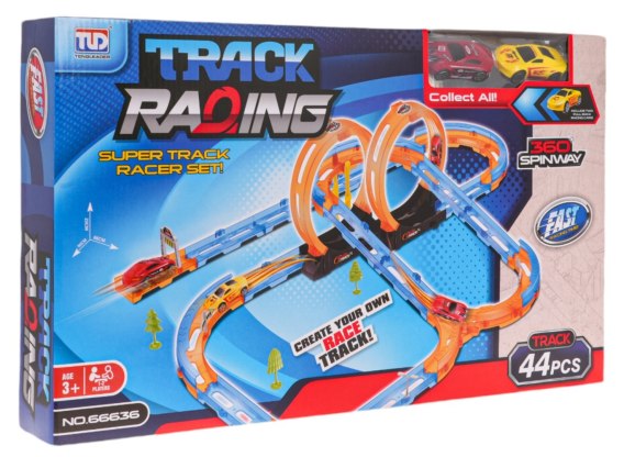 Duży, ekstremalny tor wyścigowy z ostrymi zakrętami, pętlami i dwoma szybkimi autkami w zestawie, to propozycja dla dzieci od 3-go roku życia. Zestaw składa się z 44 elementów do samodzielnego montażu. Na torze znajdują się odcinki proste, ostre zakręty z barierkami zabezpieczającymi przed wypadaniem pojazdu z trasy, a także dwie pętle 360 stopni. Autka posiadają napęd pull back. |