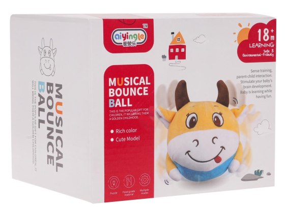 Wesoła skacząca krowa z funkcją dźwięków i świateł, dla maluszków od 18-go miesiąca życia. Krówka na pierwszy rzut oka jest milutką, pluszową przytulanką, ale kryje w sobie tajemnicę. W środku znajduje się okrągły element funkcyjny. Po uruchomieniu go krówka skacze, przemieszcza się i wydaje z siebie wesołe melodie. Kuleczka w środku posiada podświetlenie. W zestawie znajduje się pilot sterujący krówką. Element funkcyjny może być wyjmowany ze środka i ładowany za pomocą kabla USB, znajdującego się w zestawie. Krówka zasilana jest akumulatorem typu 3,7 V (w zestawie), pilot bateriami typu 1 x CR2025 3 V (w zestawie). Funkcje zabawki: - przytulanka, - zabawka z dźwiękiem, - można prać w pralce, po wyjęciu ze środka panelu funkcyjnego, - może być ładowana kablem USB, - funkcja światła: podświetlana na zielono kulka funkcyjna, - funkcje dźwięku: melodie. |