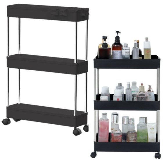 Praktyczny regał mobilny na kółkach, idealny do kuchni, salonu, sypialni czy łazienki. Wykonany z wysokiej jakości materiałów, zapewnia 3 przestronne półki na przyprawy, kosmetyki i książki. Łatwy montaż, elegancki wygląd i mobilność!