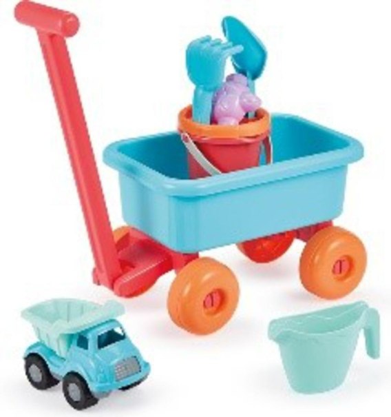 EC Wózek ogrodowy z akcesoriami\nWózek ogrodowy z wiaderkiem 12 cm, grabkami, łopatką, konewką, foremka do piasku oraz samochodzikiem.\nWymiary: TBC, 18m+