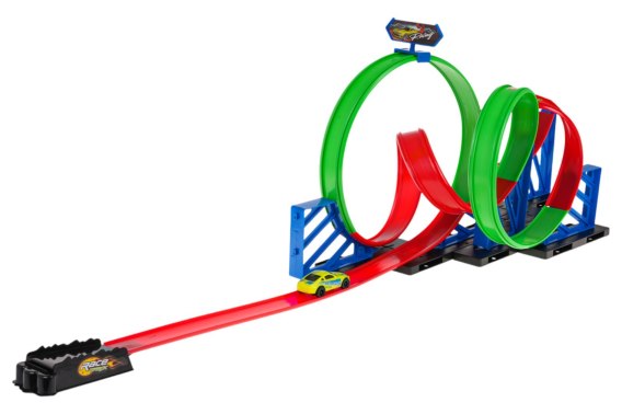 Tor wyścigowy z pętlami 360 stopni, dla dzieci od 3-go roku życia. Tor wykonano z najlepszej jakości plastiku w żywych kolorach. Tor posiada odcinek prosty do rozpędzenia pojazdu, kilka pętli 360 stopni i pojazd z napędem pull back. Wystarczy delikatnie nacisnąć pojazd do tyłu, by przejechał tor z pełną mocą. Funkcje toru: - odpowiedni dla dzieci od 3-go roku życia, - wykonany z najlepszej jakości plastiku w żywych kolorach, - pętle 360 stopni, - pojazd z napędem pull back |