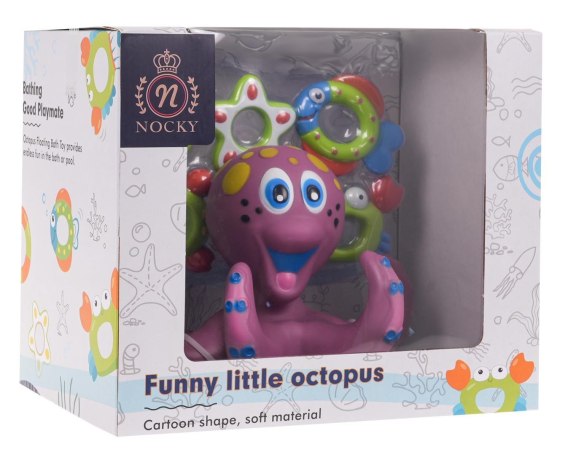 Zabawka do kąpieli, ośmiorniczka, dla dzieci od pierwszych dni życia. Zabawka składa się z dużej gumowej ośmiornicy i 5 krążków, które należy nakładać na macki ośmiornicy. Krążki przedstawiają zwierzątka morskie takie jak: krab, rybka, rak oraz gwiazdę i kółeczko. Zabawka wykonana została z najwyższej jakości materiałów, bezpiecznych dla dziecka. Umili czas kąpieli i rozwinie koordynację wzrokowo-ruchową. Funkcje zestawu: - wykonany z bezpiecznych materiałów, - przyciąga różnorodnością i żywymi kolorami, - umili czas kąpieli, - uczy spostrzegawczości i koordynacji, - ćwiczy rączki maluszka. |