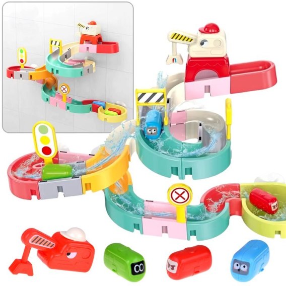 Kreatywny zestaw do zbudowania toru dla autek zachęci każdego małego marudę do kąpieli! Dzięki tej zabawce codzienna toaleta będzie ciekawym i zabawnym doświadczeniem.