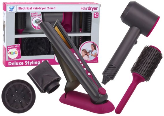 Największym atutem tego zestawu jest jego autentyczność. Suszarka imituje prawdziwe dmuchanie powietrzem, co dodaje realizmu zabawie. Dzięki temu dziecko może wcielić się w rolę profesjonalnego fryzjera, susząc i stylizując włosy lalek lub innych zabawek. Natomiast prostownica wyposażona jest w efekt świetlny nagrzewania oraz wydaje dźwięki przypominające syczenie prawdziwej prostownicy. To sprawia, że zabawa staje się jeszcze bardziej realistyczna i ekscytująca.