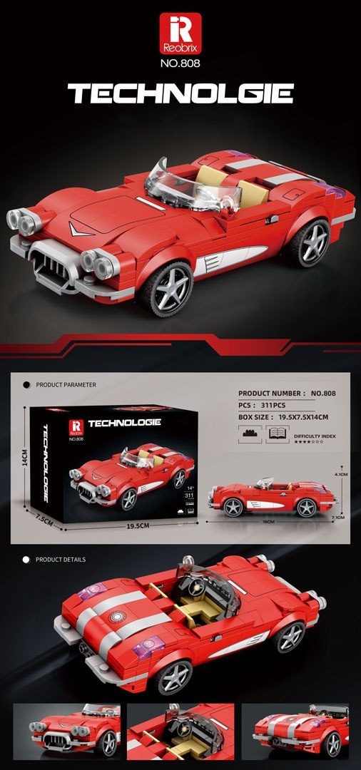 Zestaw Klocków Auto Kabriolet Czerwony 311el.