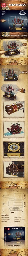 Zestaw Klocków Statek Piracki Czerwony w Butelce 885el.