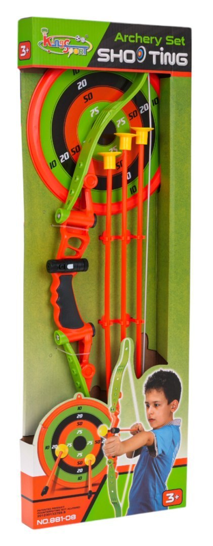 - łuk ok. 68,5 cm x 15,5 cm x 3,5 cm, - rzutka z przyssawką ok. 41 cm długości, - tarcza o średnicy ok. 23,5 cm, - opakowanie ok. 69,3 cm x 24,7 cm x 4,5 cm. |