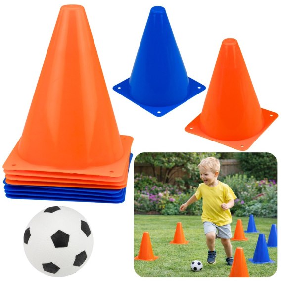 - 8 pachołków treningowych 4 pomarańczowe i 4 niebieskie