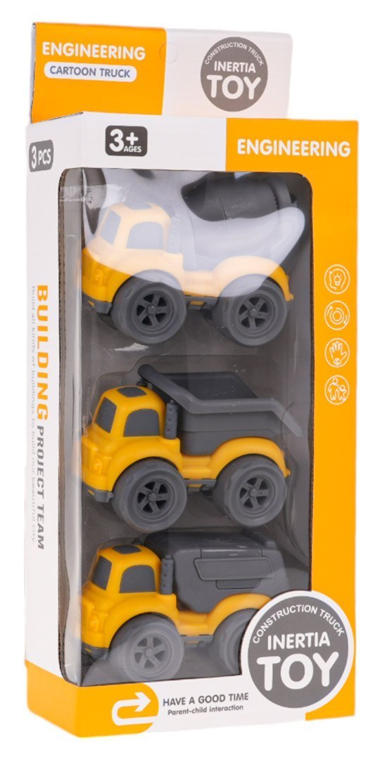 Zestaw 3 pojazdów budowlanych dla dzieci od 3-go roku życia. Zestaw wykonany został z najwyższej jakości plastiku. Niewielki gabaryt pojazdów pozwala je zabrać wszędzie ze sobą. W zestawie znajduje się betoniarka, wywrotka oraz śmieciarka. Funkcje zestawu: - przeznaczony dla dzieci od 3-go roku życia, - wykonany z najwyższej jakości plastiku, - ruchome elementy: * betoniarka z ruchomą gruszką, * wywrotka z ruchomą przyczepą, * śmieciarka z otwieraną tylną klapą. |