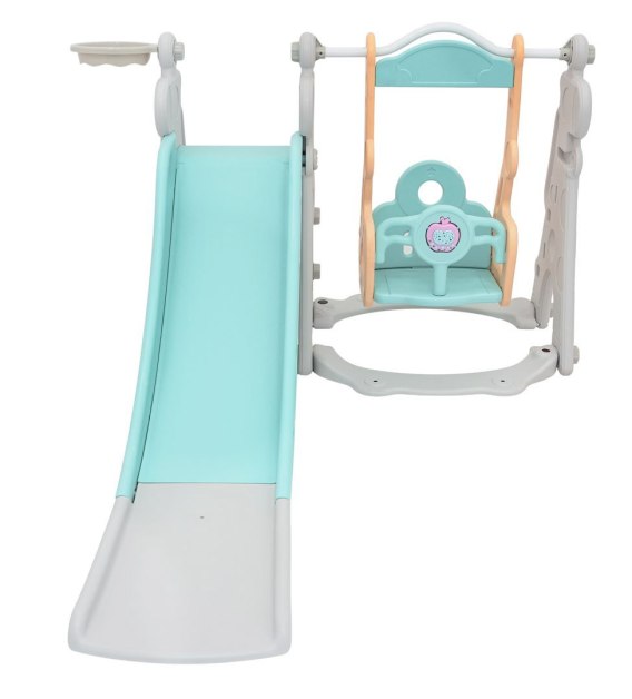 Zestaw 3w1, zjeżdżalnia, huśtawka, koszykówka dla dzieci od 1-go roku życia. Wszystkie elementy zestawu wykonane są z wysokiej jakości materiału HDPE, który jest materiałem bardziej elastycznym i odpornym na uszkodzenia mechaniczne w porównaniu z materiałami wykorzystywanymi w innych tego typu konstrukcjach. Duże elementy składowe ułatwiają montaż. Zestaw idealnie sprawdzi się na zewnątrz czy w pomieszczeniu. Funkcje: - dla dzieci od 1-go roku życia, - szeroka stabilna huśtawka, - siedzisko ze zdejmowanym zabezpieczeniem, - sztywne pałąki huśtawki, poprawiające stabilność w trakcie zabawy, - szeroki podest wzmacniający konstrukcje, - wysokie oparcie huśtawki, - długi ślizg zjeżdżalni z podwójnego plastiku, - szerokie bezpieczne stopnie zjeżdżalni, - obręcz do koszykówki, - gumowa piłeczka do gry w zestawie, - budowa huśtawki pozwalająca na zmianę układów konstrukcji, - wyjmowane jabłuszko z elementami dźwiękowymi: odgłosy zwierzątek i ich nazwy, melodie, piosenki, komendy głosowe w języku angielskim, oraz możliwość zmiany podświetlenia jabłuszka: niebieski, czerwony, zielony, mrugające światełka, - maksymalne obciążenie zestawu 100 kg. |